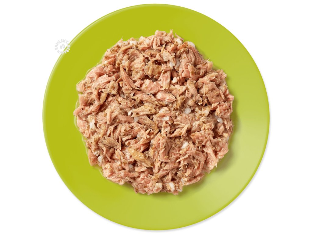 Složení: Filé z tuňáka 70 %, rybí vývar, mořské řasy 5 %, rýže.