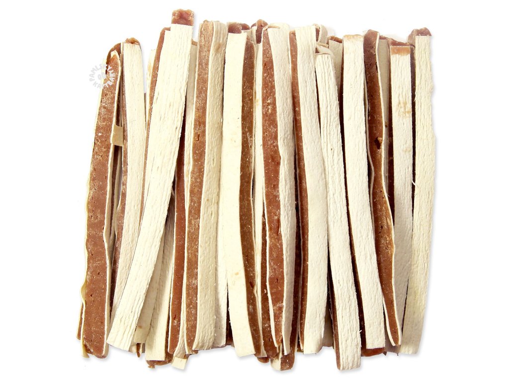 Kachní sendvič s treskou je bezlepkový pamlsek pro psy, ideální na výcvik díky své měkké konzistenci. Hodí se i pro menší psy nebo štěňata, ale nepohrdnou jím ani starší mazlíčci. Neobsahuje žádný přidaný cukr, barviva ani konzervanty. Snadno se láme na menší kousky, takže je ideální na výcvik nebo procházku jak pro velké, tak pro malé psy.