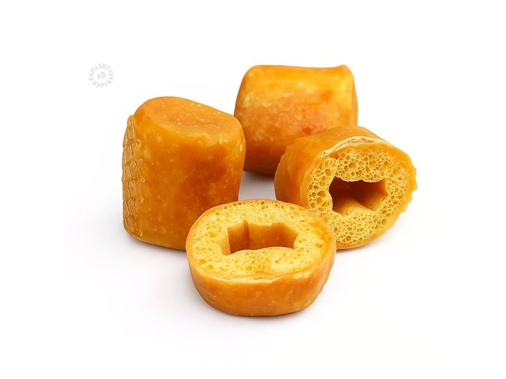 Kuřecí nugetky pro psy jsou chutný a funkční pamlsek s vysokým obsahem masa. Obsahují 60 % kuřecího masa a rýžovou mouku, jsou pečené 12 hodin pro extra křupavost a porézní strukturu, která pomáhá mechanicky čistit zuby a tím snižovat zubní kámen a plak. Díky nízkému obsahu tuku jsou vhodné pro psy na dietě, seniory i psy se sklony k nadváze. Ideální jako výcvikový pamlsek i každodenní odměna.
