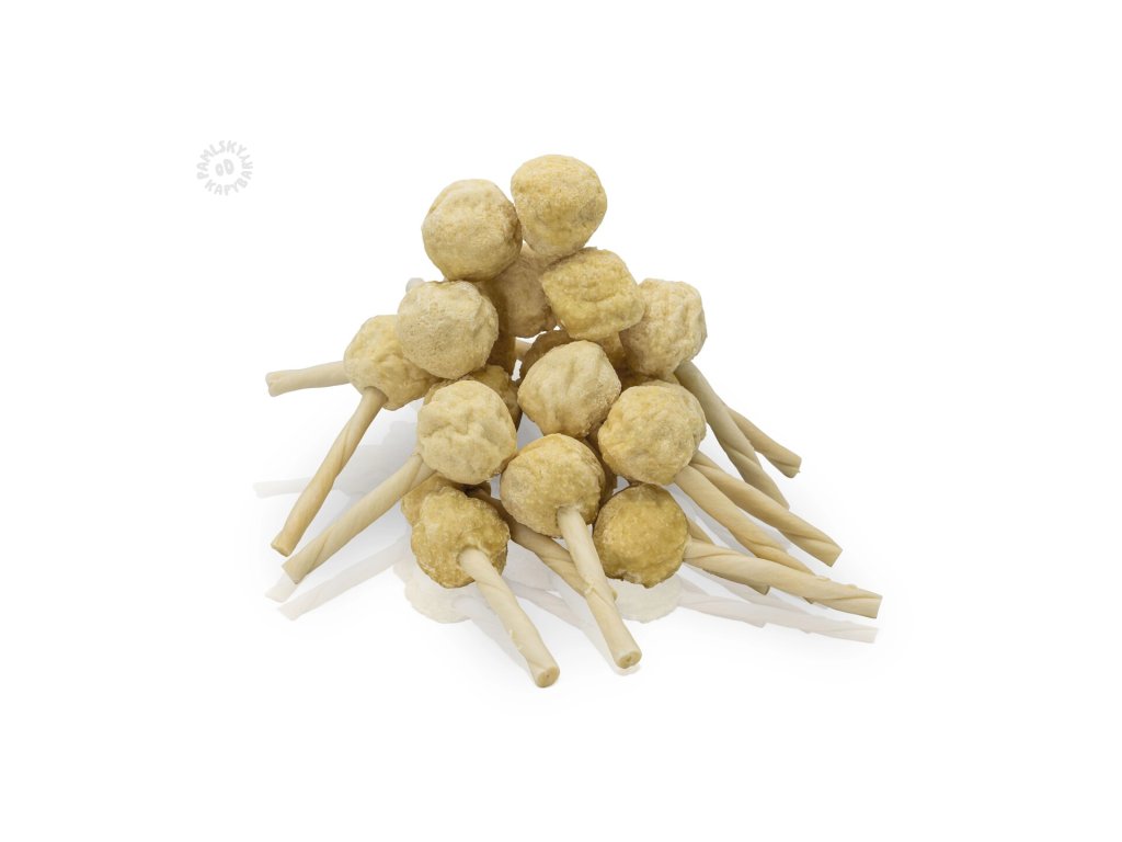 Chutné rybí lízátko s mořskou treskou je chutný pamlsek ve tvaru rybí kuličky nasazené na buvolí tyčince. Treska tvoří hlavní složku receptury a dodává pamlsku výraznou chuť, kterou si psi rychle oblíbí. Buvolí kůže zároveň přidává žvýkací prvek a prodlužuje dobu zábavy. Receptura neobsahuje obiloviny ani přidaný cukr. Pamlsek má jednoduché složení, vysoký podíl bílkovin a nízký obsah tuku. Díky praktickému tvaru je vhodný jako odměna nebo zpestření běžného dne.