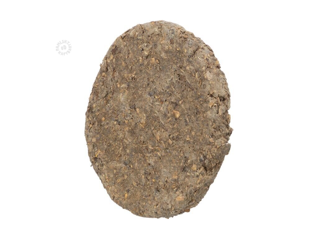 Masový pamlsek s hovězími dršťkami je skvělou volbou pro všechny psy, kteří milují výraznou masovou vůni. Obsahuje 65 % hovězích drštěk a rýžový škrob jako lehce stravitelnou složku. Neobsahuje žádný přidaný cukr a je tak vhodný i pro citlivější zažívání. Díky praktickému kulatému tvaru o průměru 8 cm se hodí jako větší odměna nebo pamlsek ke žvýkání. Upozorňujeme, že výraznou vůni sice ocení váš hafan, ale vy možná méně – dršťky jsou prostě cítit.