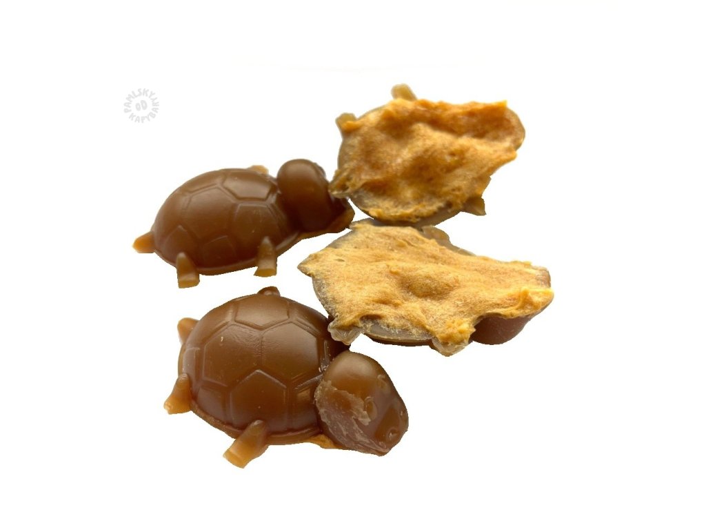 Dentální pamlsek pro psy ve tvaru želvičky, který má navíc velmi nízký obsah tuku, takže je vhodný i pro starší psy se sklonem k nadváze. Tvar želvičky pomáhá čistit zuby od zubního kamene a plaku. Díky pomalému pečení má i pevnější strukturu, která hlavně menším chlupáčům dá chvilku zabrat. ne nadarmo se želvička zařadila mezi naše nejprodávanější pamlsky, které chutnají, jsou dobře stravitelné a zároveň pomáhají s dentální hygienou našeho mazlíčka.