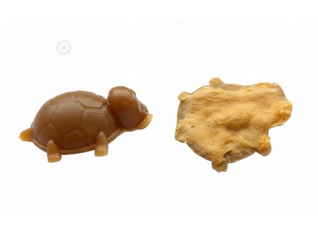 Dentální pamlsek pro psy ve tvaru želvičky, který má navíc velmi nízký obsah tuku, takže je vhodný i pro starší psy se sklonem k nadváze. Tvar želvičky pomáhá čistit zuby od zubního kamene a plaku. Díky pomalému pečení má i pevnější strukturu, která hlavně menším chlupáčům dá chvilku zabrat. ne nadarmo se želvička zařadila mezi naše nejprodávanější pamlsky, které chutnají, jsou dobře stravitelné a zároveň pomáhají s dentální hygienou našeho mazlíčka.